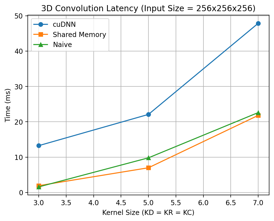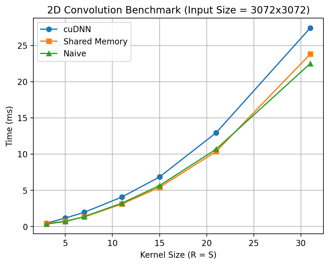 In this post, I benchmark CUDA implementations of convolution and analyze their performance across 1D, 2D, and 3D convolution workloads.